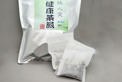 木村薬局オリジナルの健康茶煎。はぶ茶、はと麦、杜仲茶、シソ葉、橙の皮、ドクダミをブレンドしたデトックスに最適なお茶。